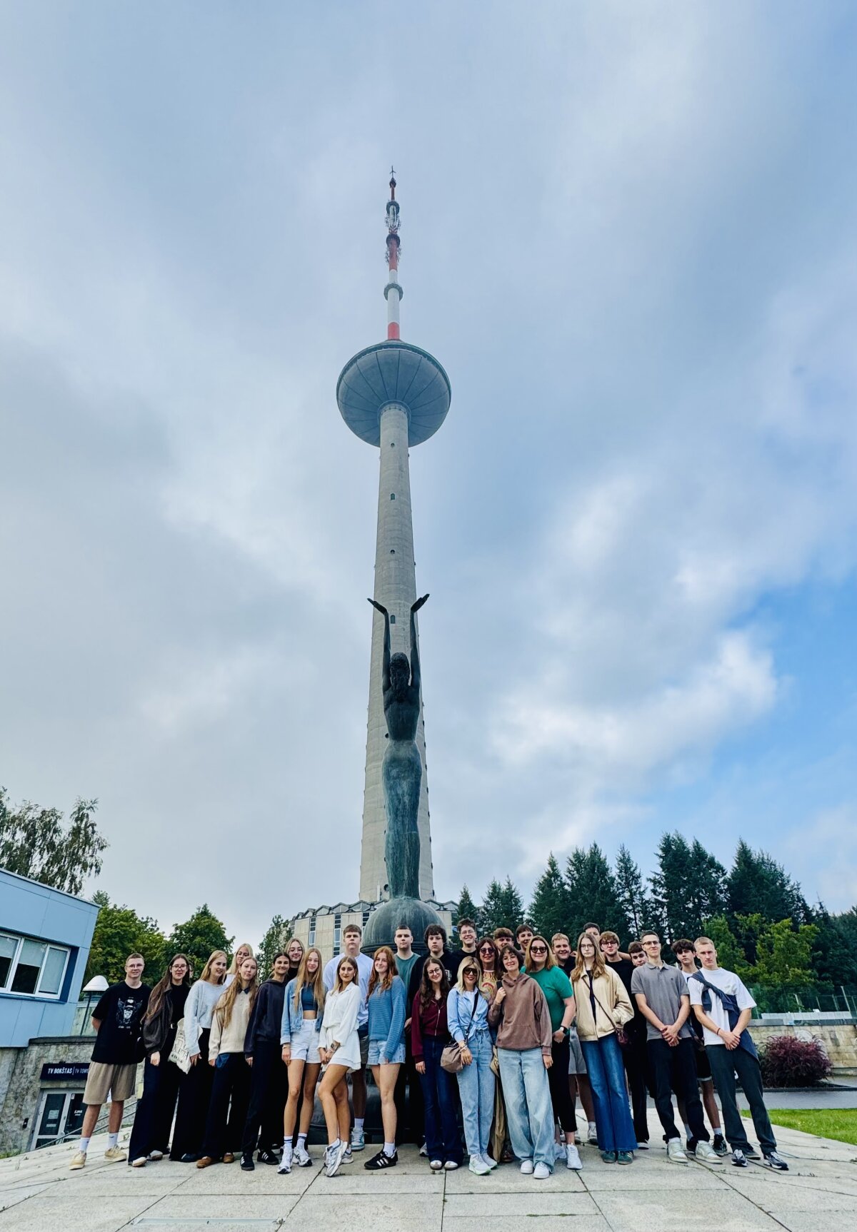 Vienas įsimintiniausių šios ekskursijos momentas – aplankytas Vilniaus televizijos bokštas, kuris žavi savo aukščiu ir mena svarbius Lietuvos istorinius įvykius. Ekskursijoje dalyvavo ir mokytojos bei mokinės iš Italijos mokyklos Liceo Scientifico De Amaldi Bitetto, kurios mūsų gimnazijoje lankosi pagal vykdomą „Erasmus+“ akreditacijos projektą. Profesionalus edukatorius papasakojo apie Vilniaus televizijos bokšto reikšmę Lietuvos laisvės kelyje: Sausio 13-ąją Lietuvos žmonės taikiai priešinosi sovietinei agresijai, o televizijos bokštas tapo vienu iš pagrindinių pasipriešinimo simbolių. Žvelgdami per apžvalgos aikštelės langus, gimnazistai ir mūsų viešnios gėrėjosi Gedimino pilimi, Trijų kryžių kalnu, Neries vingiais ir moderniuoju Vilniumi.