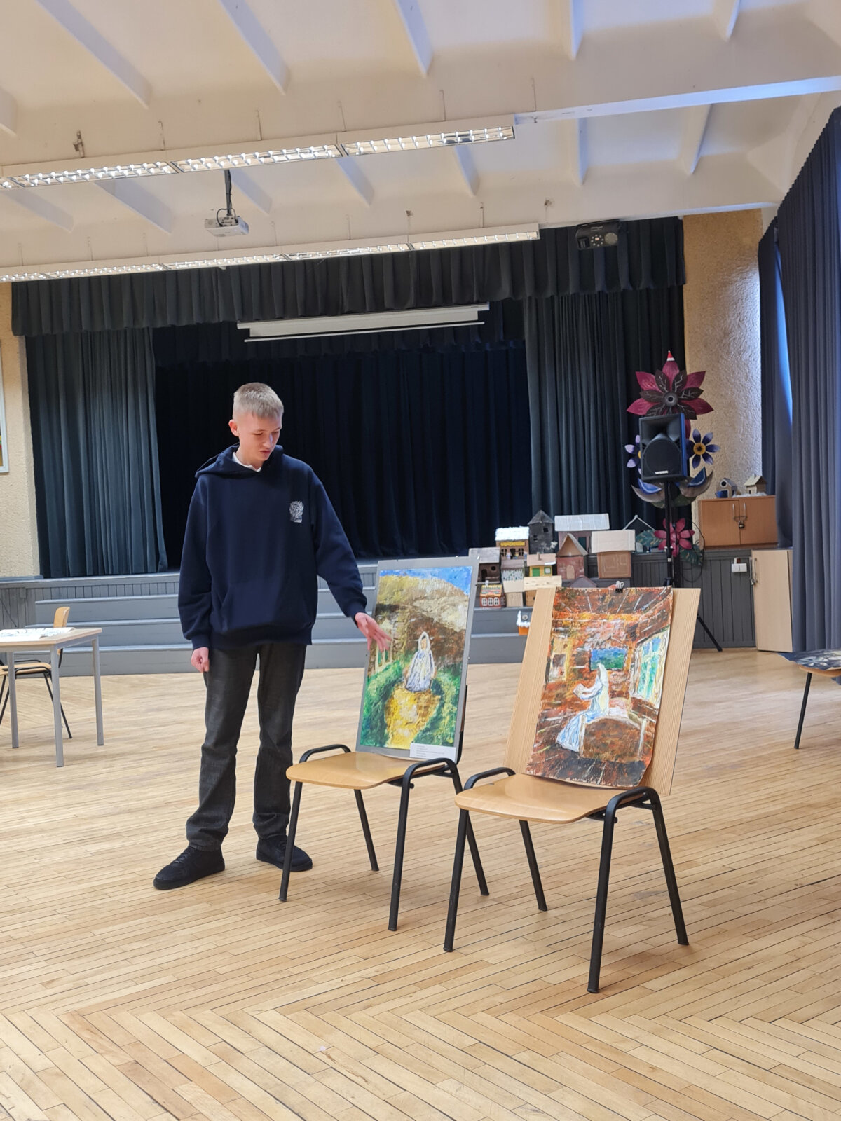 Mūsų gimnazijai atstovavo penki gimnazistai, kuriems padėjo pasiruošti dailės mokytoja metodininkė Ilona Rasimavičienė. Gimnazistų kūrybiniai namų darbai, taip pat olimpiados metu atliktos kompozicijos nepaliko komisijos abejingos. Visi mokiniai laimėjo prizines vietas: