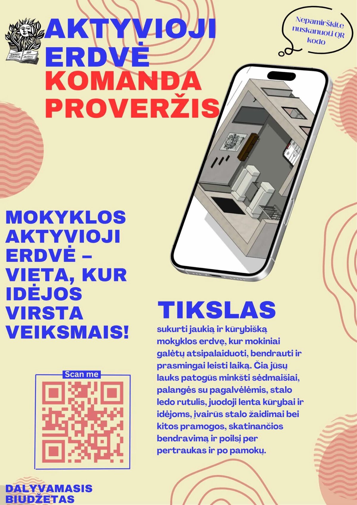 Šiemet dalyvaujamojo biudžeto projekte dalyvavo trys mokinių komandos: ,,Miegapelės“ (II C kl.: Dija Degutytė, Jonas Skrockis, Dovydas Dobila, Svajūnė Karandaitė), ,,SoftSpot“ (II B kl.: Kornelija Žiobaitė, Klaidas Blaškevičius ir III D kl. mokinė Ieva Rukaitė) ir ,,Proveržis“ (II A kl.: Dovydas Pacukonis, Martynas Urbaitis, Dovydas Stravinskas, Rapolas Mitkevičius), kurios siūlė idėjas, skirtas mokymosi ir poilsio aplinkai gerinti. Po viešų projektų pristatymų gimnazijos bendruomenė buvo pakviesta balsuoti už labiausiai patinkančią iniciatyvą. Balsavimo metu išaiškėjo mokinių labiausiai palaikytas komandos ,,Proveržis“ projektas ,,Aktyvioji erdvė“, kuris netrukus bus pradėtas įgyvendinti.