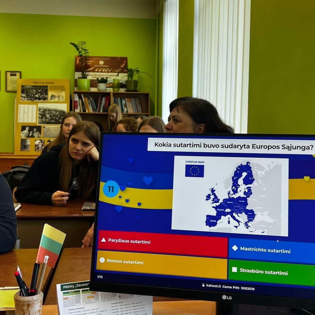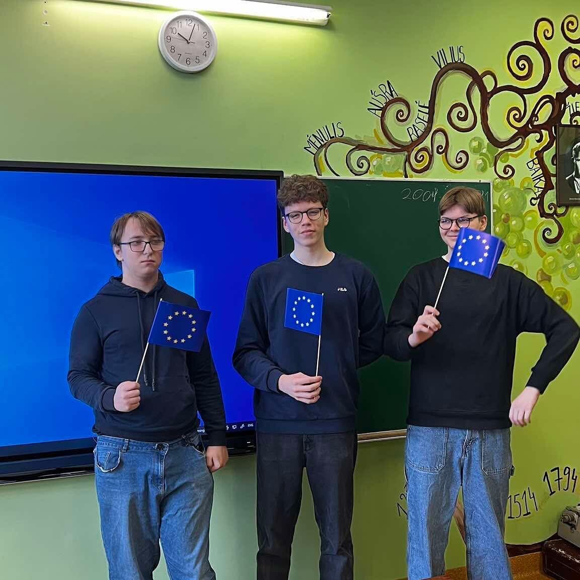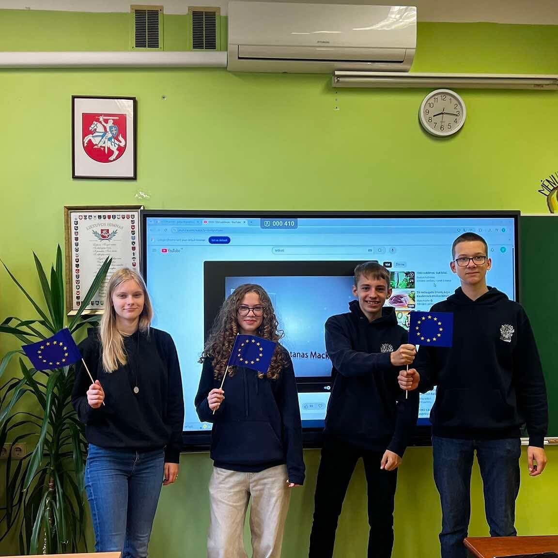 Gegužės 5-ąją istorijos pamokose jaunesnieji ambasadoriai tikrino gimnazistų žinias apie Europos Sąjungą – mokiniai dalyvavo interaktyviame žaidime ir atsakė į klausimus apie ES institucijas, valstybes nares, simbolius bei Europos piliečių teises. Gegužės 6-ąją vyko viktorina apie Europos šalis: mokiniai galėjo pasitikrinti žinias apie ES valstybes nares, jų sostines, simbolius, kultūrinius ypatumus ir istorinius faktus. Gegužės 7-ąją etikos ir gyvenimo įgūdžių pamokose buvo žiūrimi filmai, skirti ES vertybėms, tvarumui, solidarumui ir pilietiškumui. Po filmų peržiūros mokiniai diskutavo, kaip šios vertybės atsiskleidžia kasdienybėje ir kokį vaidmenį jauni žmonės gali atlikti kuriant atsakingą Europos ateitį.