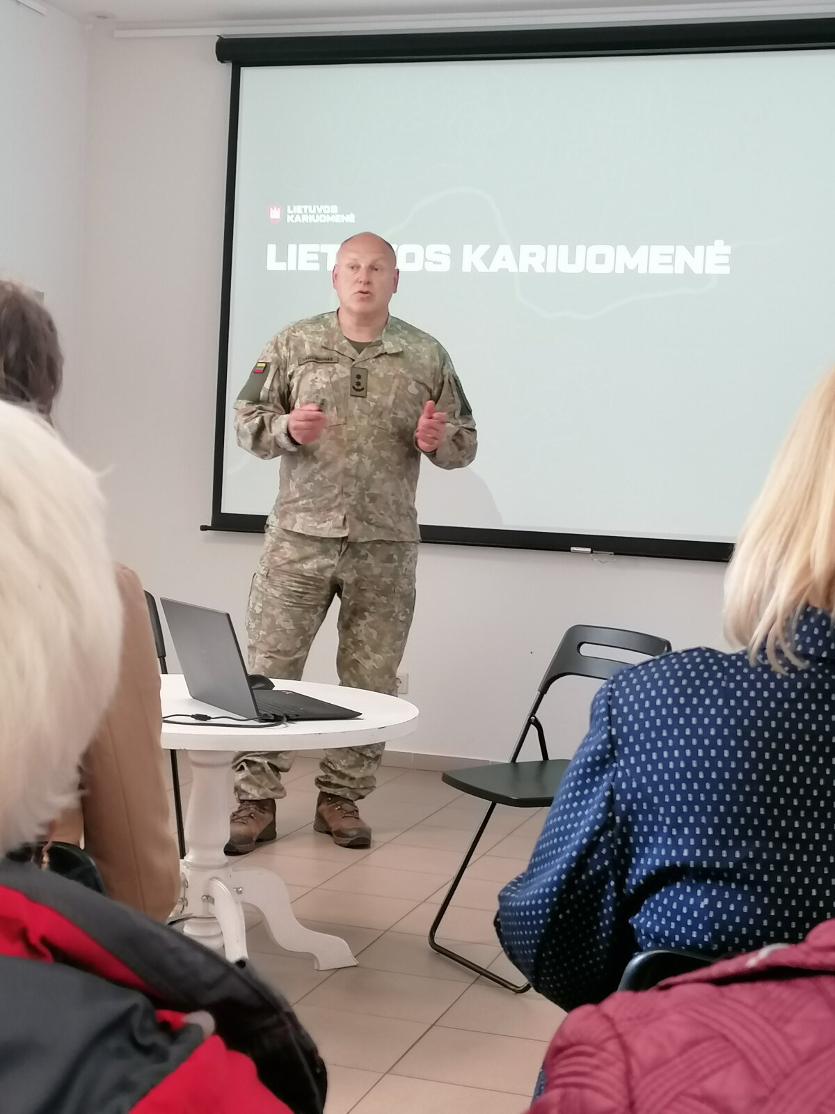 V. Vasiliauskas trumpai priminė Lietuvos kariuomenės kūrimosi istoriją, supažindino su Juozo Lukšos mokymo centro mokymo programų kursais ir teikiamomis galimybėmis.