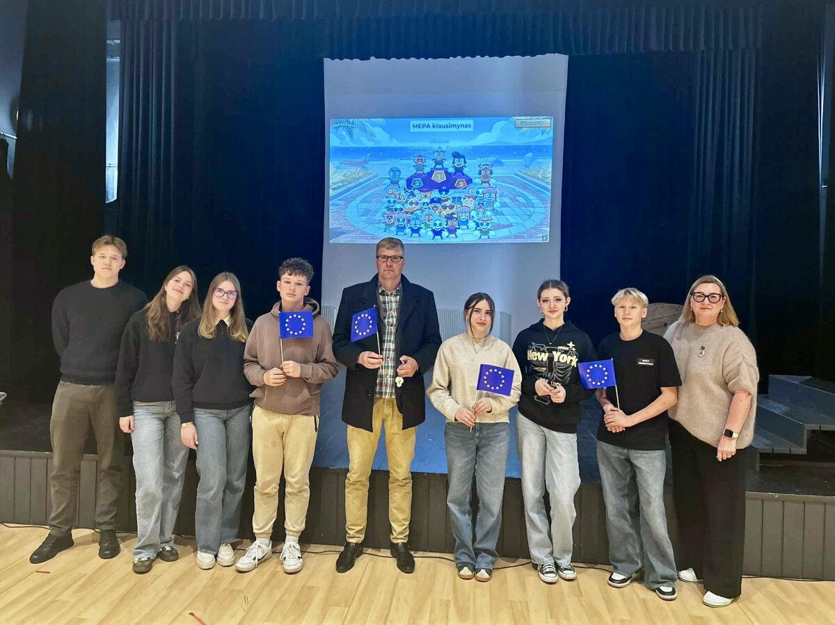 Gegužės 14-ąją Prienų „Žiburio“ gimnazijos MEPA programos jaunieji ambasadoriai Skriaudžių pagrindinėje mokykloje dalyvavo edukaciniame renginyje ir supažindino su ES reikšme bei MEPA programos tikslais.