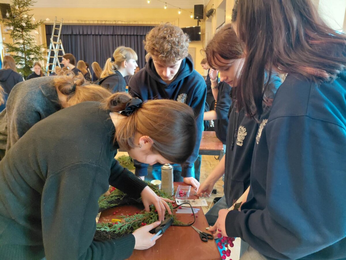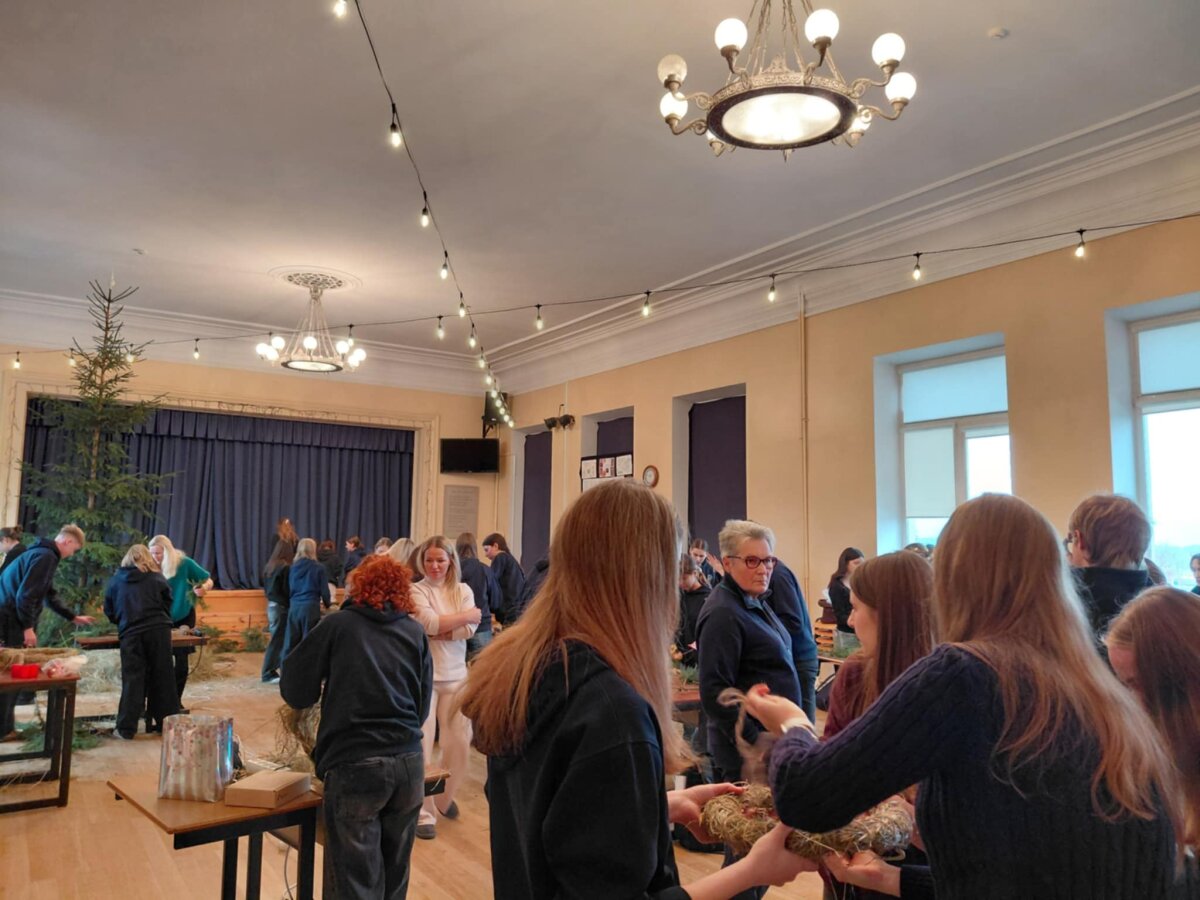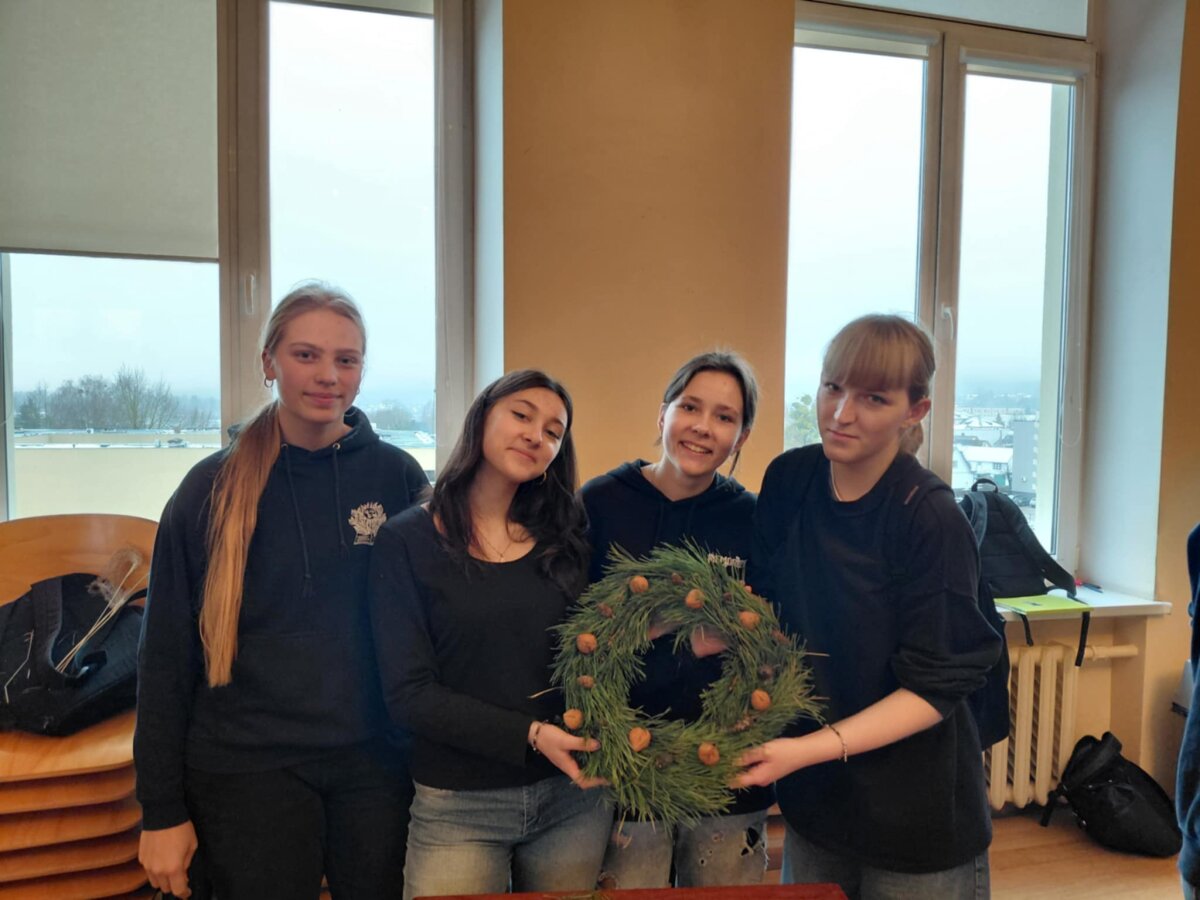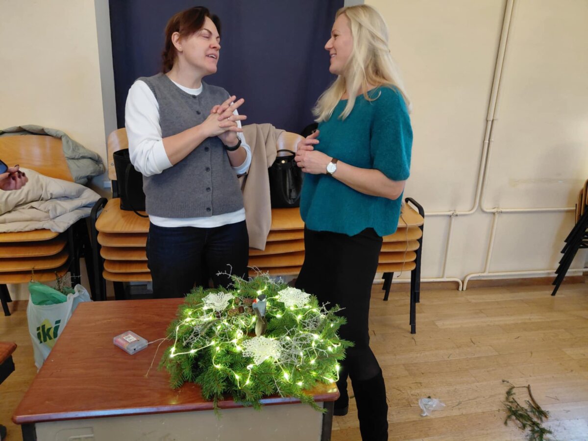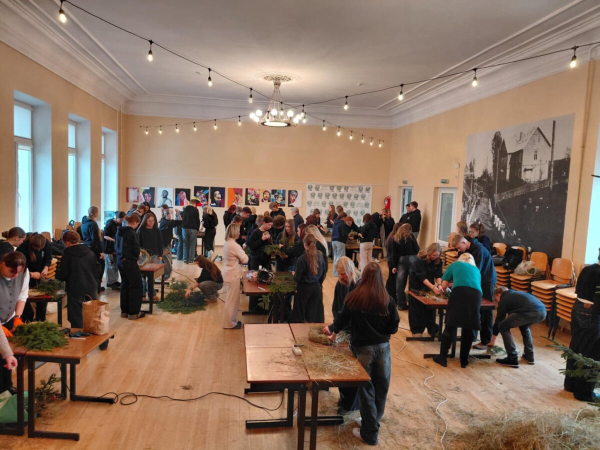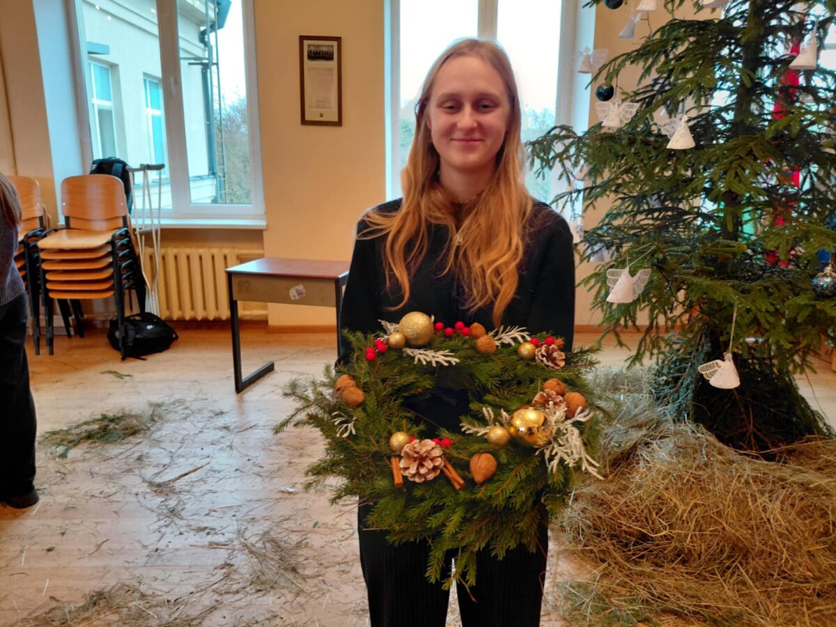 Gruodžio 1 dieną visų klasių mokiniai, nešini papuošimais, skubėjo į Aktų salę pinti vainiko, kuriuo vėliau papuošė savo kabinetą. Smagiai ir kruopščiai mokiniai dirbo, kol nupynė gražiausius ir puošniausius vainikėlius. Džiugu, kad jiems talkino ir Tėvų tarybos atstovės – mamytės: Jūratė Mitkevičienė, Akvilė Sadauskienė, Sandra Gegužinskė. Jų nupintas Advento vainikas papuošė Mokytojų kambarį. Dėkojame visoms mamytėms, TT pirmininkei Jurgitai Suchockienei už iniciatyvą, kūrybiškumą ir bendruomeniškumą, o mokiniams – už originalias idėjas ir jų įgyvendinimą. Smagi bendra veikla dar kartą įrodė, kad tradicijų tęstinumas yra gyvas ir svarbus gimnazijos bendruomenei.