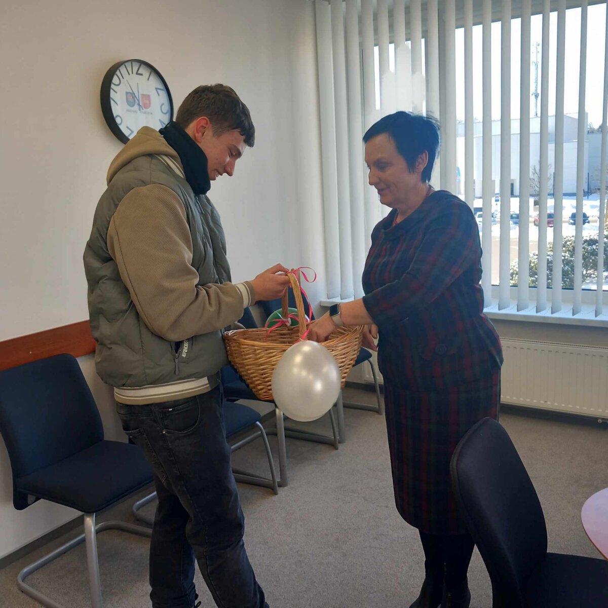 Šventė prasidėjo jau ankstyvą rytą – bendruomenė rinkosi į Šv. Mišias bažnyčioje. Po Mišių dalis mokinių lankėsi organizacijose, sveikino darbuotojus, dalijo saldainius, balionus ir linkėjo geros nuotaikos. Ši iniciatyva ne tik skleidė šventinę dvasią, bet ir stiprino ryšį tarp gimnazijos ir vietos bendruomenės.