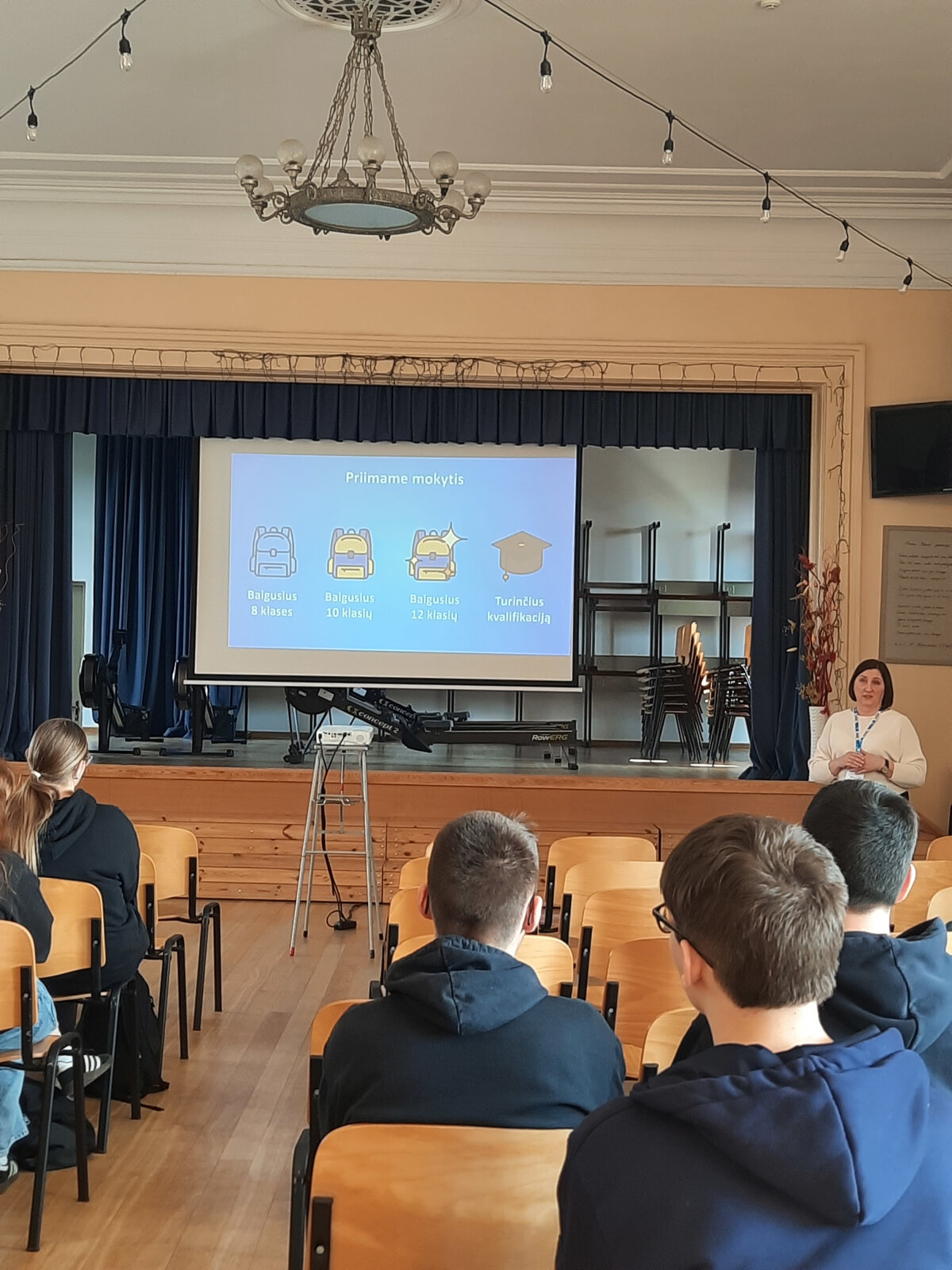 KITM karjeros specialistė Kristina Užpalevičienė ragino gimnazistus analizuoti savo asmenybę, domėtis profesijomis, susipažinti su darbo aplinka, patirti sėkmę, kartu nebijoti klysti ir atrasti savo kelią. Istorijos mokytoja Rasa Chmelevskienė supažindino su mokymosi galimybėmis KITM, kad mokiniai, priklausomai nuo mokymosi vidurkio, gauna stipendijas, gyvena bendrabučiuose.