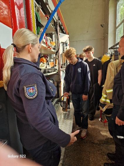Valstybinėje priešgaisrinėje gelbėjimo tarnyboje Rūta Palaimaitė, vyr. specialistė, personalo vadovė, mokiniams pristatė pareigūno profesijos unikalumą. Labai svarbu dirbančiajam, kalbėjo vyr. specialistė, turėti drąsos ir pasitikėjimo bei teisingai atlikti nurodytas užduotis. Šiame darbe dažnai susiduriama su iššūkiais ir avarijomis, todėl žmonėms, dirbantiems su rizika susijusį darbą, privalu išlaikyti fizinius normatyvus, o įsidarbinti galima turint vidurinį išsilavinimą, specialybę galima įgyti VDU arba ugniagesių gelbėtojų mokykloje. Į Valstybinę priešgaisrinę gelbėjimo tarnybą mokinius palydėjo Jurgita Tamošiūnienė, matematikos mokytoja.