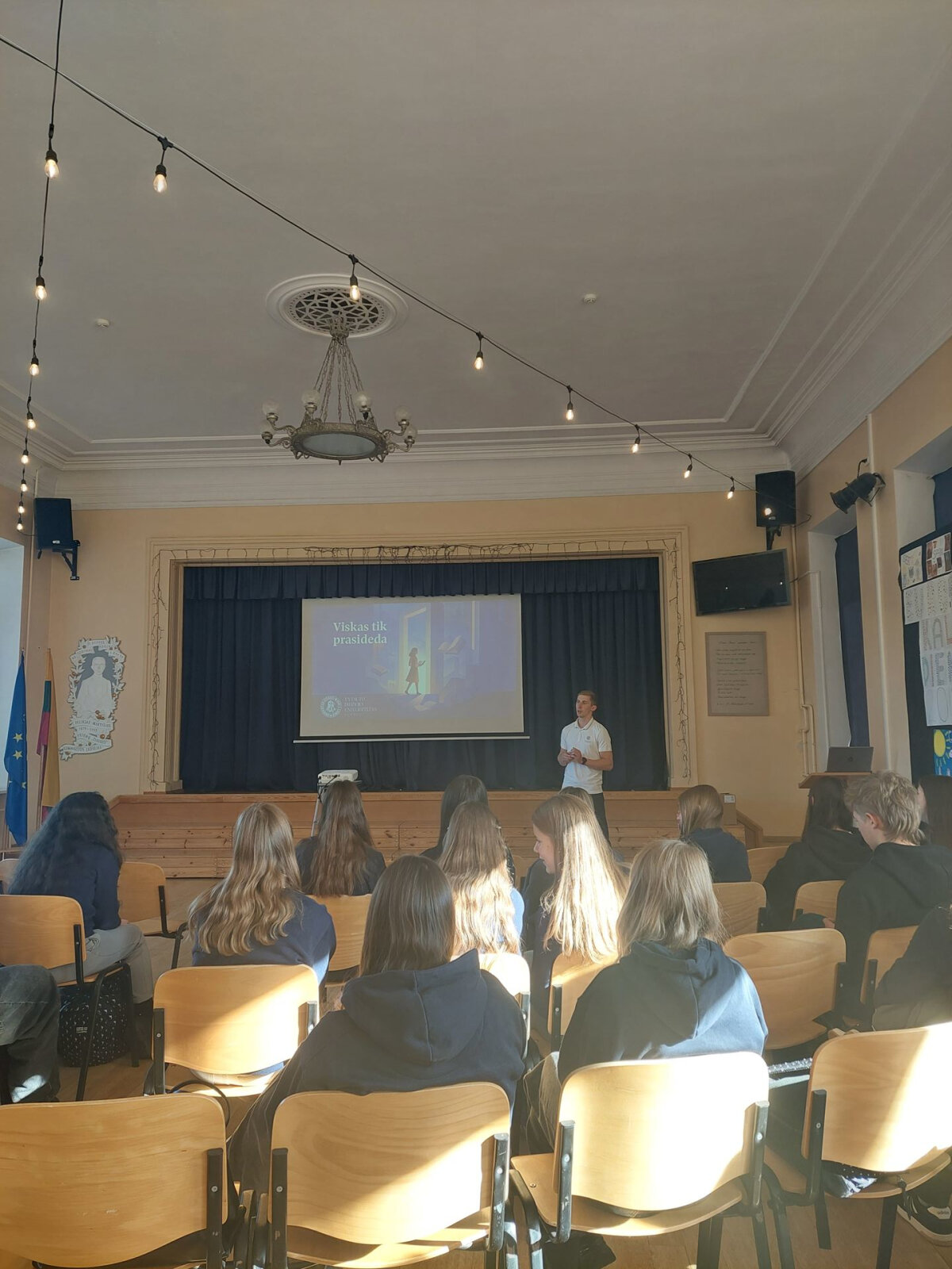 Kovo 17 dieną I–V klasių mokiniams klasės valandėlė vyko aktų salėje. VDU ambasa... -