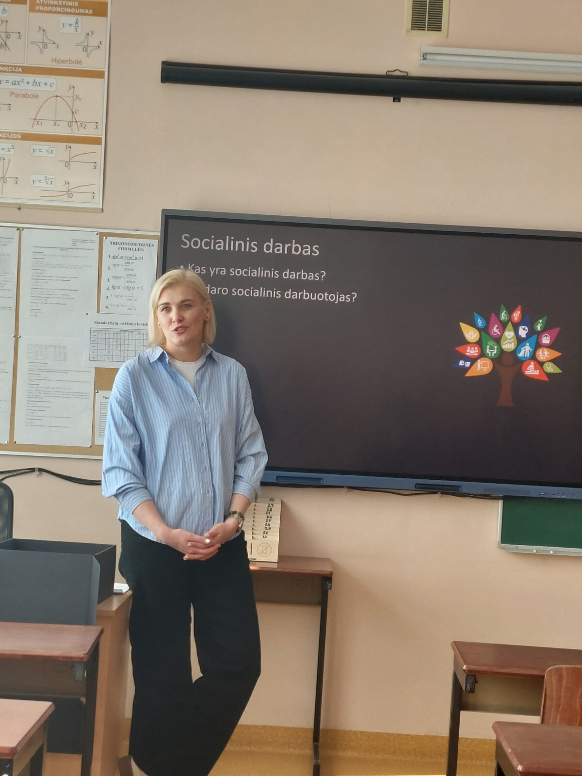 Renata Dubauskė, socialinio darbo lektorė ir praktikė, supažindino gimnazistus su socialinio darbo programa – ją studijuojantiems labai geros sąlygos įgyti teorinių žinių ir praktinių gebėjimų, būtinų profesinėje veikloje. Lektorė pabrėžė, kad šiandien labai didelis socialinių darbuotojų poreikis ir svarbi pagalba asmenims, šeimoms, bendruomenei užtikrinti gyvenimo kokybę.