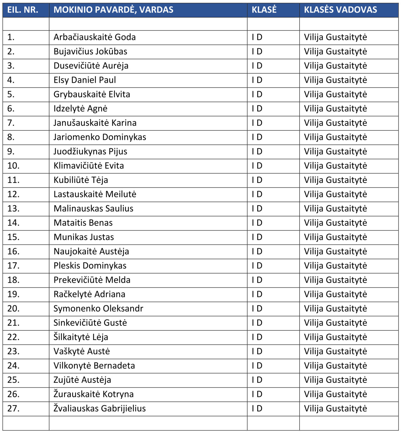 ID GIMNAZIJOS KLASĖ